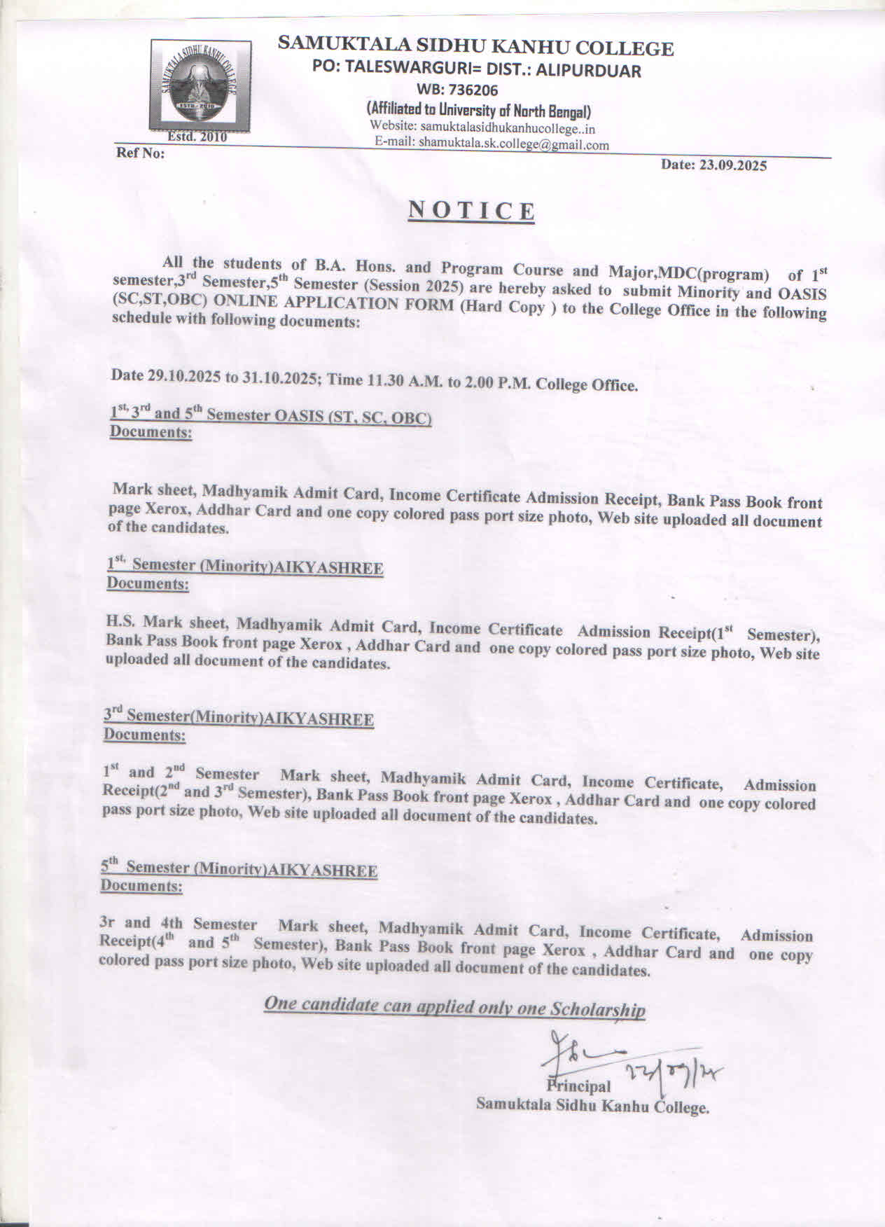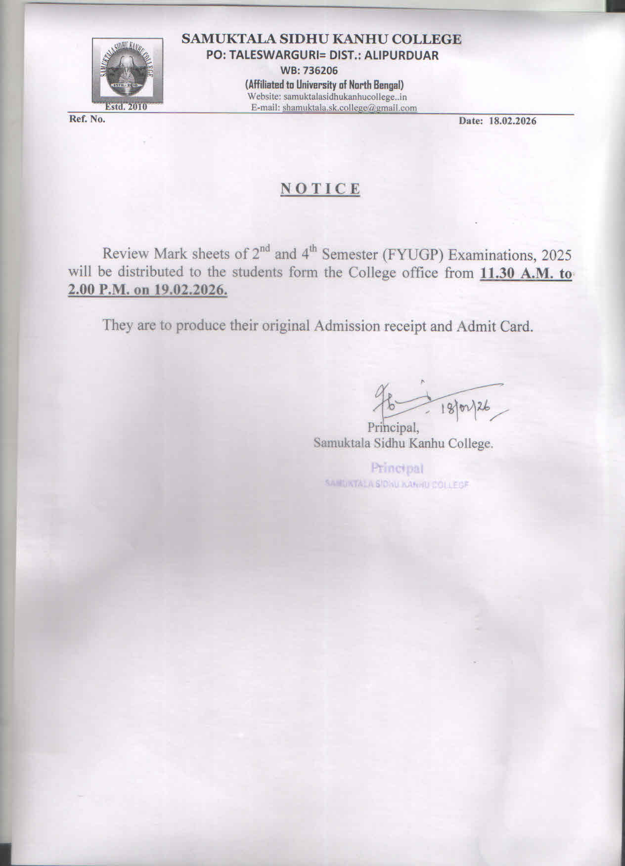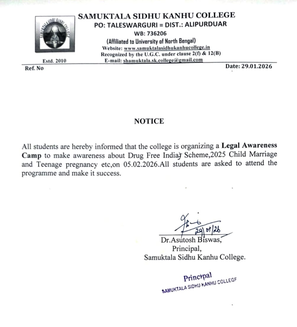 It gives me immense pleasure to speak few words about Samuktala Sidhu Kanhu College from this platform. It is not unknown to us that education is the backbone of the society. A society without education is like a stagnant lagoon which can descend into the darkness of ignorance and superstition. Nelson Mandela rightly said “Education is the most powerful weapon which you can use to change the world”. It is the only medium through which we can dispel this curse of ignorance and propel the wheel of civilization. Keeping in mind this higher mission and vision, Samuktala Sidhu Kanhu College took a small step in 2010..